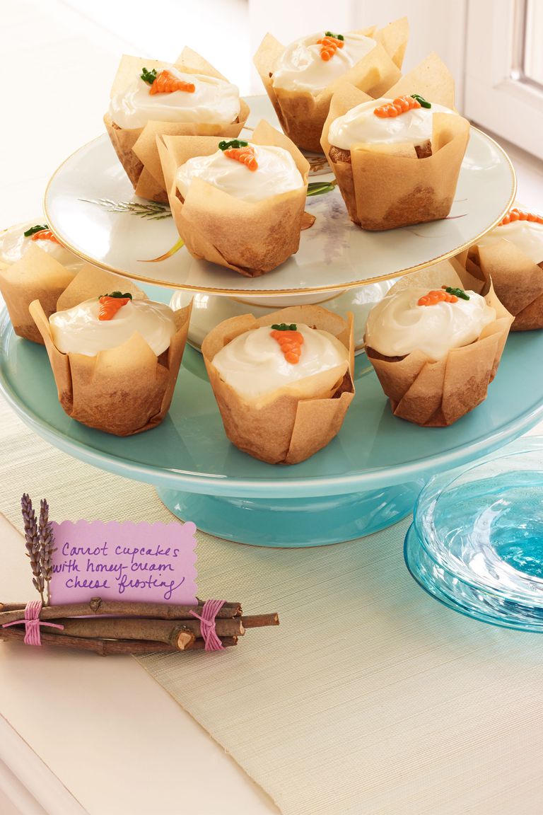 Carrot Cupcakes with Honey-Cream Cheese Frosting These cute cupcakes are the perfect way to end Easter dinner. Get the recipe.