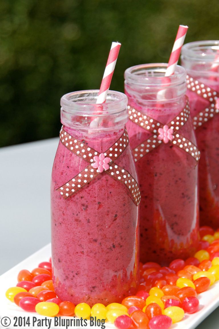 Spring Berry Smoothies Serve this healthy treat in vintage glass milk bottles embellished with ribbon and striped paper straws (stick in two per glass to mimic Easter bunny ears!) to make a statement on your brunch table. Get the recipe at Party Blueprints