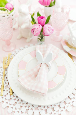 Be it through linens or plates, a light pink pattern establishes an elegant, soft contrast against white decor and serveware. Get the tutorial at PIZZAZZERIE.