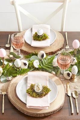 atch your eggs to your plates and glasses, then neatly align them on a wooden sugar mold in the center of the table. Get the tutorial at A Wonderful Thought.