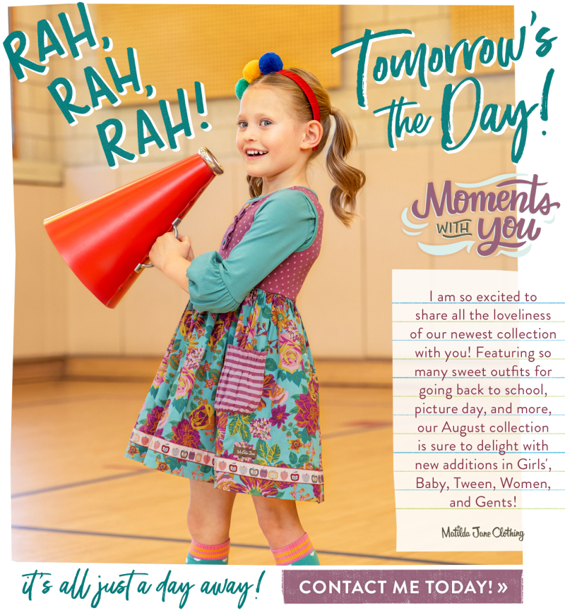 Tomorrows The Day ~ Matilda Jane Back To School line // Moments With You Posted on July 31, 2019 by dkteel Shopping starts at midnight ~ Click HERE to shop Share this: Share on X (Opens in new window) X Share on Facebook (Opens in new window) Facebook Like Loading... Related