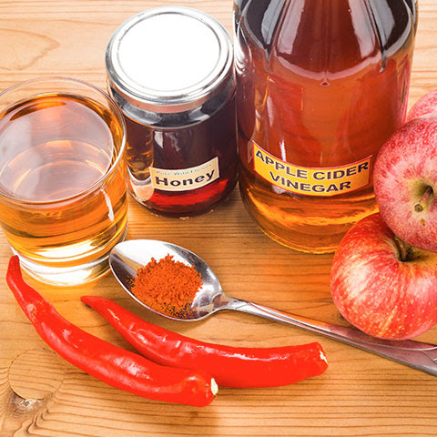 - Honey/apple cider vinegar. Mix 1/4 cup of apple cider vinegar and 1/4 cup of honey. Take one tablespoon every four hours or as needed for pain relief.