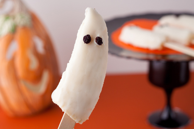 Swap out eating ice cream by the spoonful or giving out sugary lollipops for a playful, low-calorie frozen banana. To bring the chocolate-covered ghost to life, dip quartered bananas into white chocolate. Quickly stick on mini chocolate chips for the eyes and freeze on waxed paper. Perfect for first-time cooks—we encourage you to let your kids play sous chef and see their creations come to life with this recipe that’s spooky-easy to make.