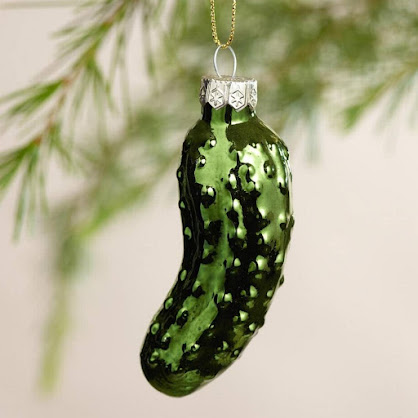 There are several legends about this cute little green delight. One Christmas pickle legend is that a German-born soldier during the American Civil War was a prisoner of war in Georgia. While on the verge of starvation and death on Christmas Eve, the prisoner begged a guard for one last pickle. The guard gave the solider his requested pickle and that pickle gave him the strength to persevere till the war was over. After the war, when the soldier returned home, he began hanging a pickle on his tree every Christmas season.