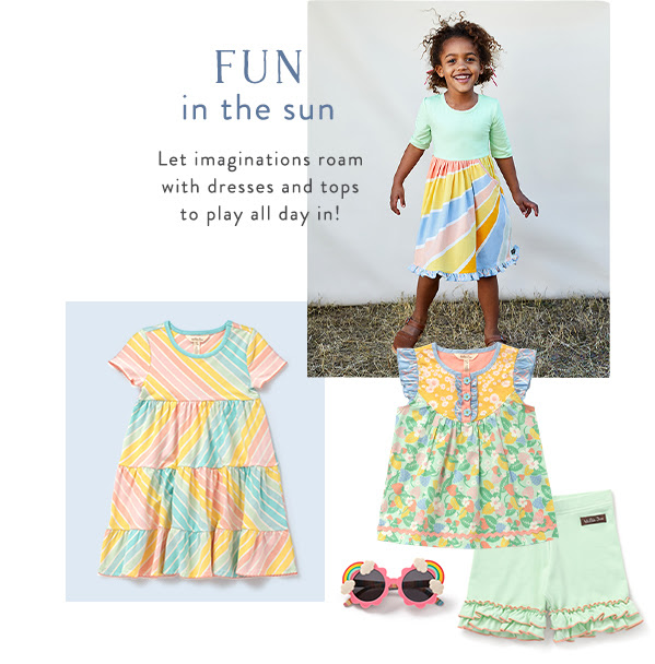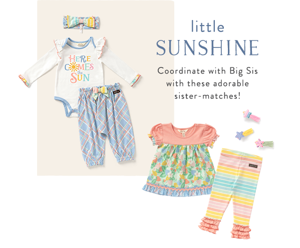 Here Come the Sun🌞 … Matilda Jane Dream Chasers grab the shades!👓 Posted on February 10, 2021 by dkteel  Winter blues have us longing for warm spring days … well grab some spring styles from MJ + get coordinating looks for big & little sister featuring colors of the rainbow! From baby to tween, she can have fun in the sun and chase rainbows …   Share this: Share on X (Opens in new window) X Share on Facebook (Opens in new window) Facebook Like Loading... Related