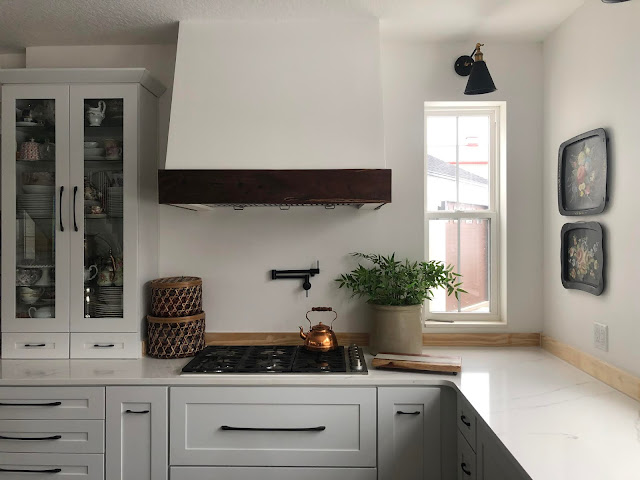 So I haven’t ever really shared this side of the kitchen on IG because it was UGLY! We had the ugly silver venting system in place for the hood for the last 7 months but just completed the actual hood surround. I didn’t want anything trendy and preferred something timeless, classic. We also knew that it needed to be substantial in size since there are no upper cabinets and the other side of the kitchen has the wall oven and frig … it needed to balance out so one side didn’t look “too heavy” or looking lopsided.