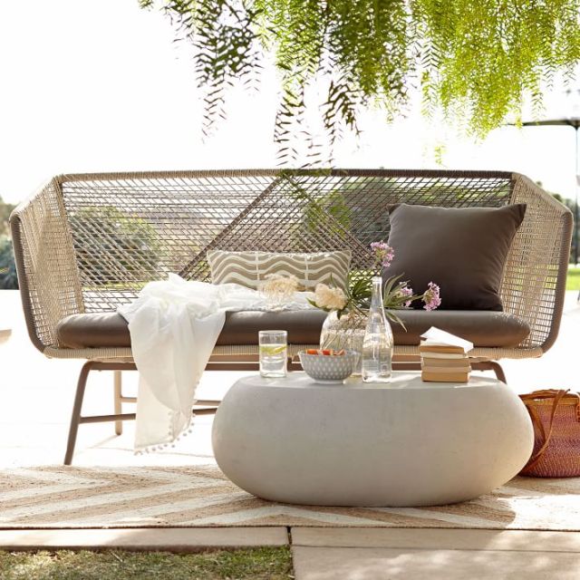 Huron Sofa ~ Sofas aren’t often thought of as the showstoppers of a patio setup—but this one isn’t your average sofa. Made of all-weather cord handwoven around a metal frame, the contemporary piece is equal parts art form and practical workhorse.