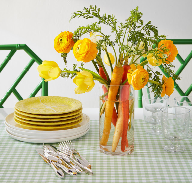 I absolutely LOVE this idea from DAVID A. LAND. Carrots scream EASTER so why not make them your Easter centerpiece? Grab some carrots from the store and with their frilly greens still attached pair them with yellow and orange ranunculus, tulips, and/or other spring flowers. Ps. Wash carrots thoroughly (but don’t peel) before arranging in your container, to keep the water clean.