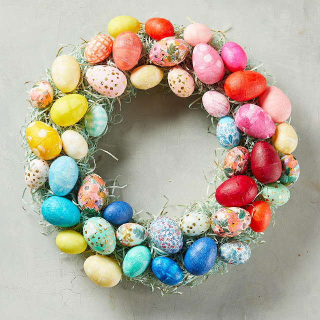 This idea from BRIE PASSANO is so fun! If you have old plastic eggs rolling around your holiday bins, put them to good use. Use patterned napkins to decoupage an ordinary plastic egg into a colorful Easter decoration. Here a variety of colors and patterns are used for a rainbow display, but you can use monochromatic packs of napkins for a more cohesive look.