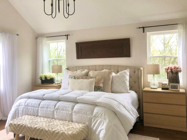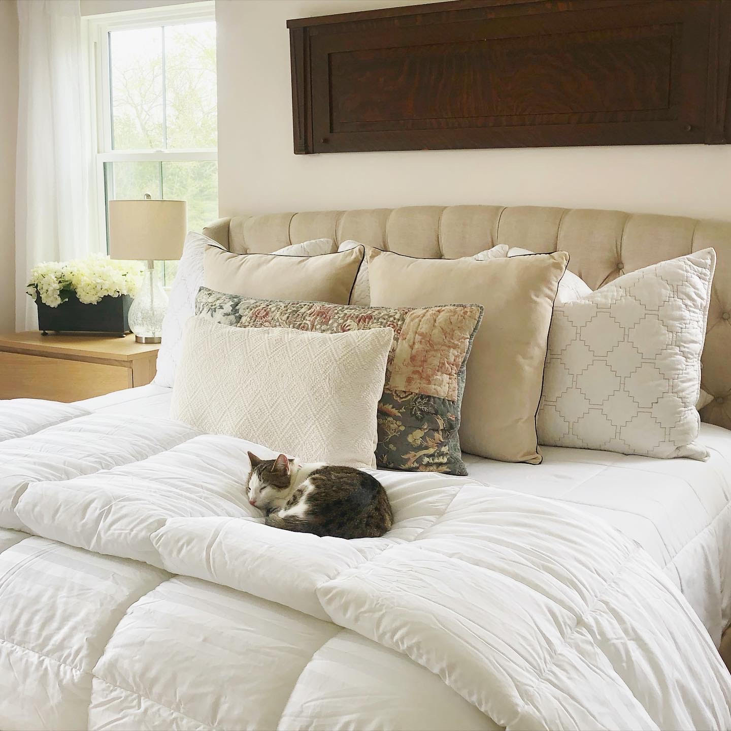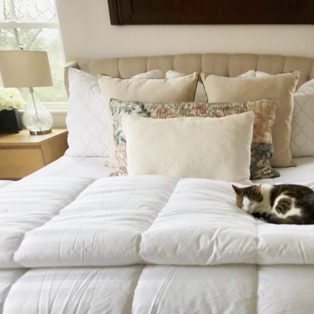 Well this fabulous luxury fluffy comforter is a Stearns + Foster 400 thread count Primacool Comforter from Downlite Bedding Company. I have worked with them before on the other white down alternative comforter that is also on bed under the fluff one so when they asked if I would be interested in partnering with them again on this collaborative project they are doing with Stearns and Foster I couldn’t resist.