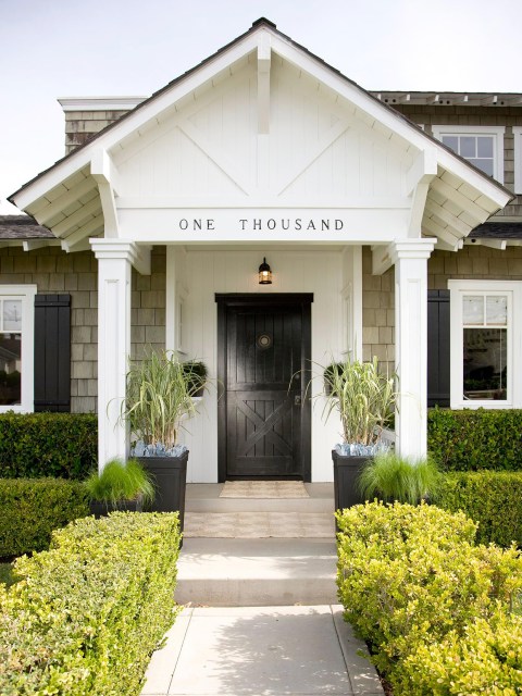 Make the entry a focal point ~ You might not have the cash for a full-on exterior makeover, but improving your entryway can make a big impact on your home’s curb appeal. Use a dark hue to make the point of entry pop, then flank the front door with tall planters. Finish the look by adding symmetrical plantings on either side of the walkway.