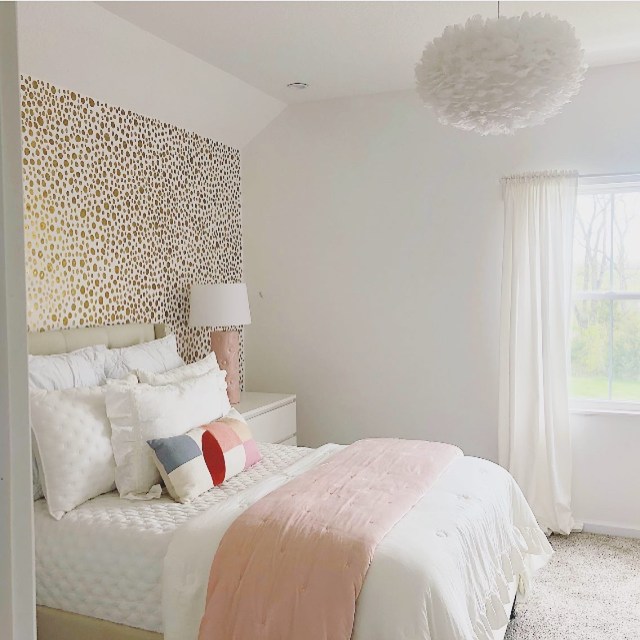 Well that’s not entirely true … I did spend 26 hours of my life hand painting each of these gold dots on her wall! And that was only because she/we found a wallpaper that we both LOVED. It was all these hand painted gold metallic dots but the paper was about $300 per roll and I needed 5 to do this wall 😱 Needless to say momma got out the brush, gold paint and went to work. In all truthfulness, we were in a pandemic so it was therapeutic and I had the time to spare.
