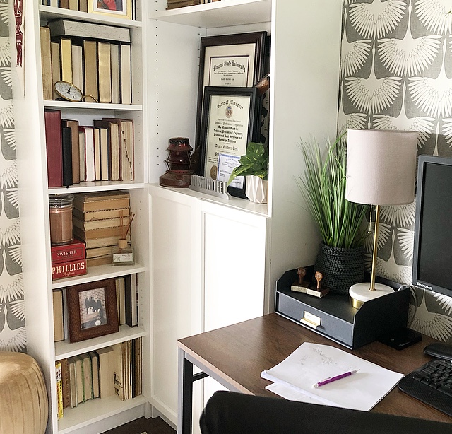 The short version is he took a different job within his company at the beginning of the year and can be at home indefinitely, if he chooses (he does have an office at the main campus but can go whenever he chooses). The only problem with that is that our home office is fairly small, a place for the occasional work from home day. I promised him that when school was out I would redo the office.