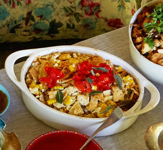 Double Corn-Cornbread Stuffing ~ Try our take on traditional Thanksgiving stuffing. With both hearty corn bread and off-the-cob kernels, the holiday side offers twice as much feel-good flavor. Red onion, baby spinach, and crushed red pepper help balance corn’s cozy-sweet flavor.Cranberry and Pear Conserve ~ For a traditional feast, serve this incredible conserve in a pretty bowl to accentuate the “thanks” in Thanksgiving. Or, for a precursor to a special meal, whisk some of the conserve into a homemade or purchased vinaigrette salad dressing and serve it with baby salad greens.