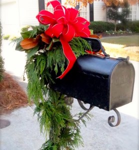 The Mailbox ~ Bright ribbons, twinkling lights and garland all create a warm welcome for visitors and your mail carrier. Consider changing your ribbon colors from Fall to Festive Christmas colors when needed and to make your decor last longer.