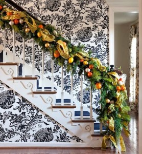 The Banister ~ Often seen from the front door, garland along the staircase adds to the warm, welcoming feeling of the holidays.