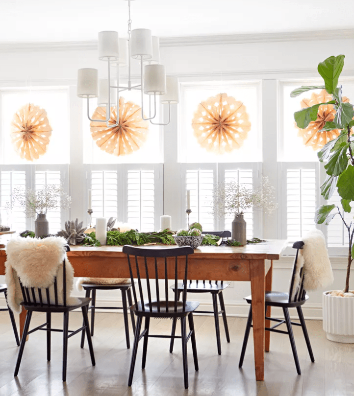You can never go wrong with paper snowflakes, animal rugs and greens.