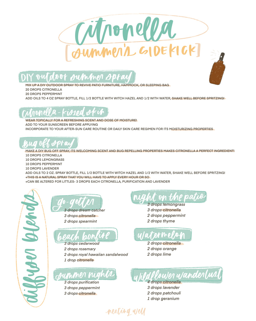 - Just a bit of Citronella oil in your diffuser, moisturizer, or DIY patio accents can make you feel transported to a simpler time.